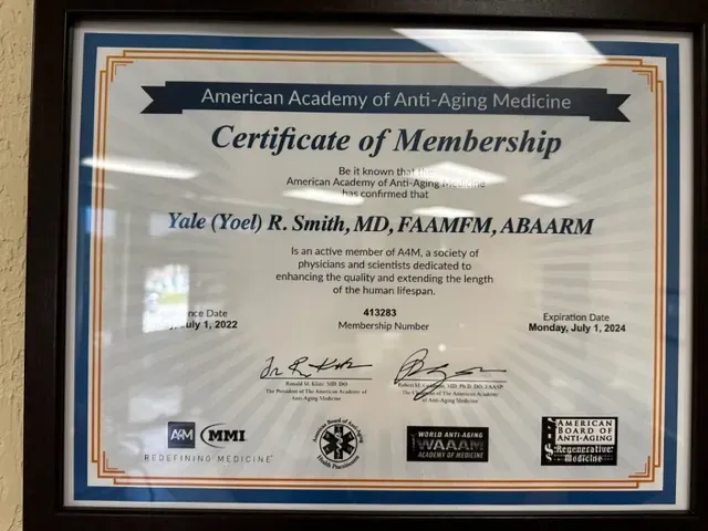 With an extensive background in both anesthesiology and regenerative medicine, Dr. Smith brings unparalleled expertise to the field of anti-aging and metabolic health. As a Diplomate of the American Board of Anti-Aging and Regenerative Medicine and an Advanced Fellow in Antiaging Metabolic and Functional Medicine, Dr. Smith is dedicated to providing innovative treatment options that empower patients to achieve optimal health.
